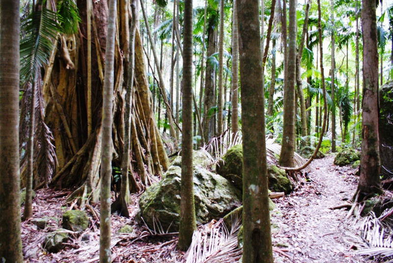 Binna Burra i O’Reilly’s łączy 22 kilometrowy szlak graniczny (Border Track), biegnący wzdłuż granicy Queensland z Nową Południową Walią, który zamierzamy wkrótce przebyć. Wracając do Binna Burra – to nie tylko las tropikalny, ale również obszar historycznie bardzo ważny dla plemion Aborygeńskich, które wykorzystywały znajdujące się tam wgłębienia skalne jako schronienia oraz miejsca do gotowania. Jaskinie zostały wyrzeźbione w skałach wulkanicznych przez deszcz oraz wiatr i nazywają się Kweebani Caves. Przy skałach znajdują się tabliczki z informacjami o plemionach aborygeńskich, które tam mieszkały i o ich zdolnościach do wykorzystywania darów natury oraz medycyny naturalnej (informacje te przekazane zostały z pokolenia na pokolenie w formie piosenek czy rymowanek).